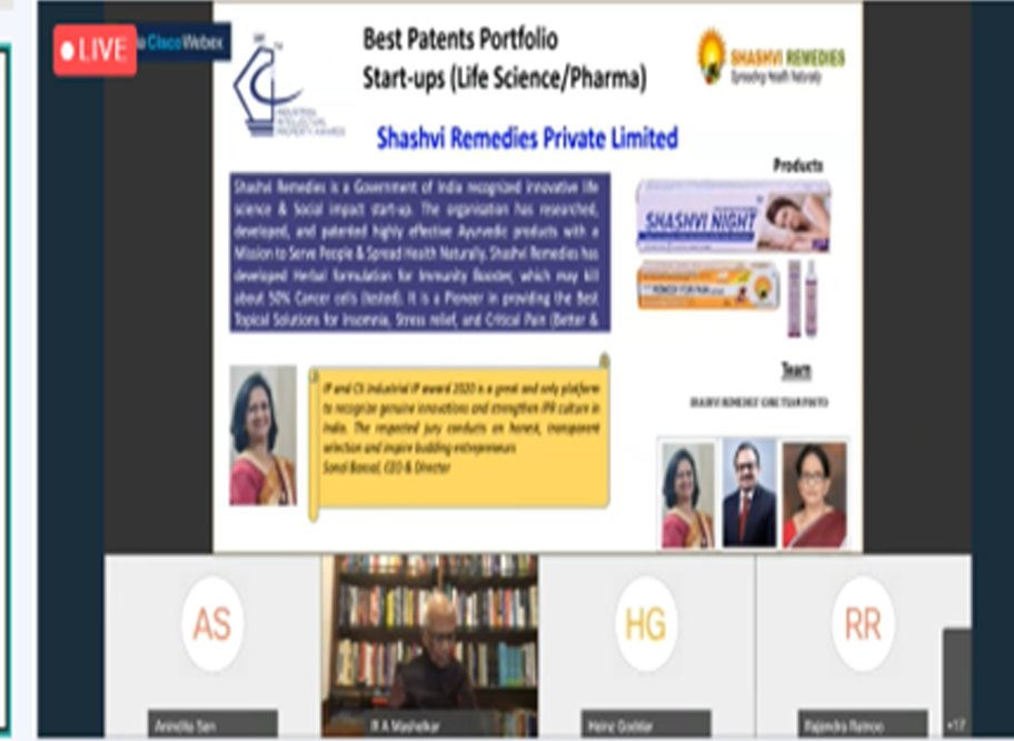 Shashvi Remedies Private Limited won the award in the Category of Best Patents Portfolio Start-ups (Life Science/Pharma))