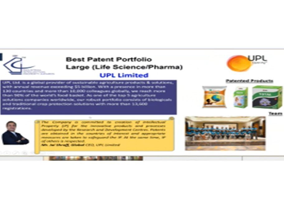 UPL Limited won the award in the Category of Best Patent Portfolio, Large(Manufacturing/ Engineering)