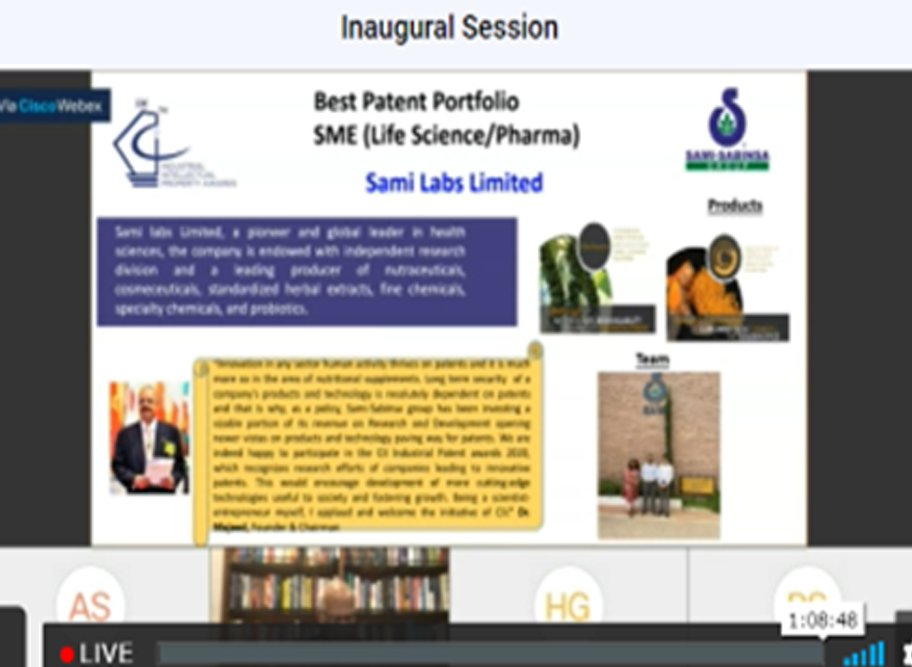 Sami Labs Limited won the awards in the Category of Best Patent Portfolio SME (Life Science/Pharma)