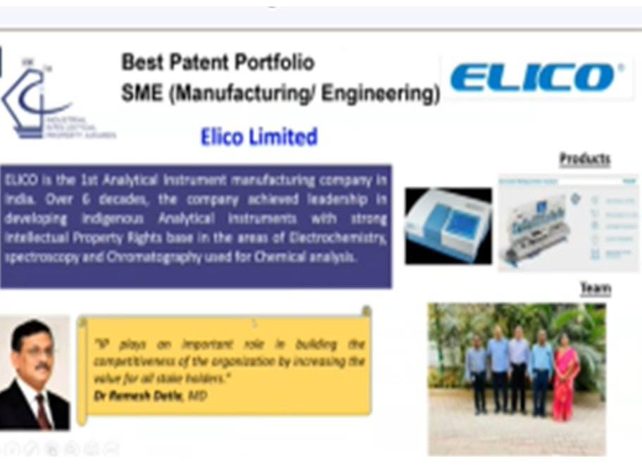 Elico Limited won the award in the Category of Best Patent Portfolio, SME (Manufacturing/ Engineering)