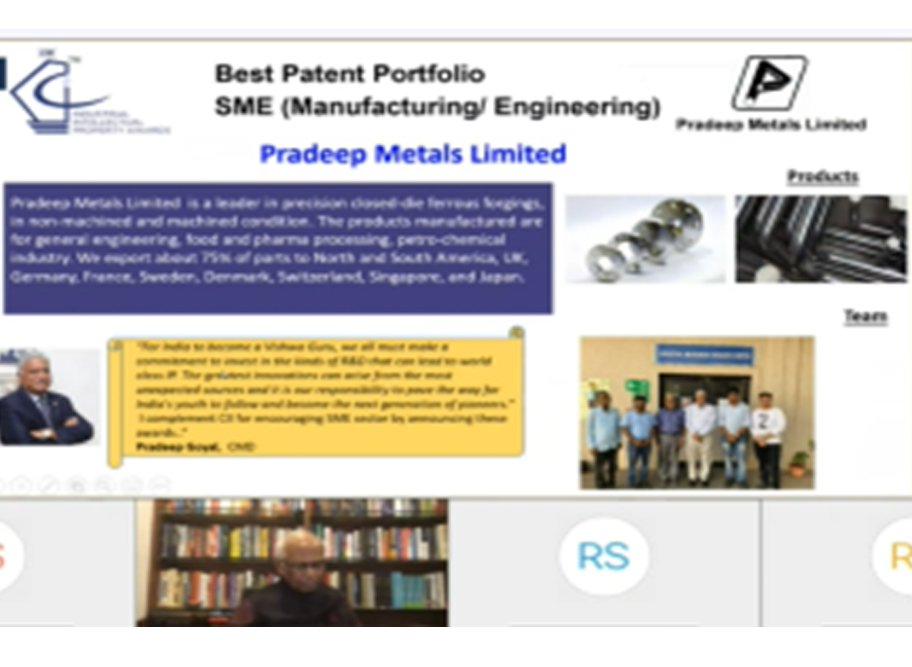 Pradeep Metals Limited won the award in the Category of Best Patent Portfolio, SME (Manufacturing/ Engineering)
