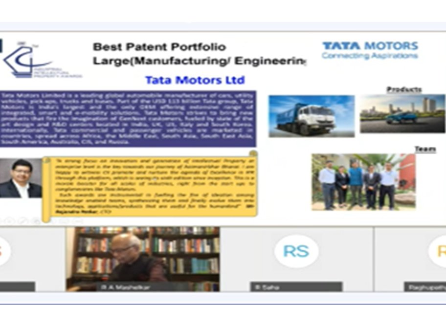 Tata Motors Ltd won the award in the Category of Best Patent Portfolio, Large(Manufacturing/ Engineering)