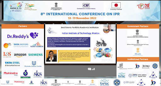 Indian Institute of Technology Madras won the award in the category of Best Patent Portfolio, Academic Institution