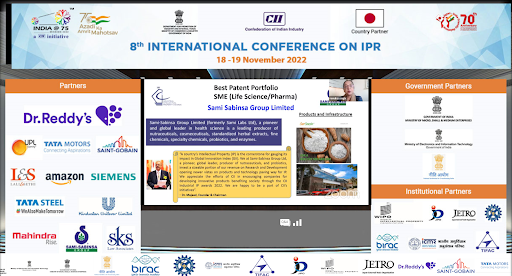 Sami-Sabinsa Group Ltd won the award in the category of Best Patent Portfolio, SME- Life Sciences (Pharma and Agriculture sciences)